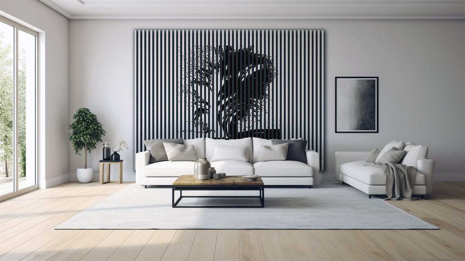 Biały lamel z czarną grafika.
